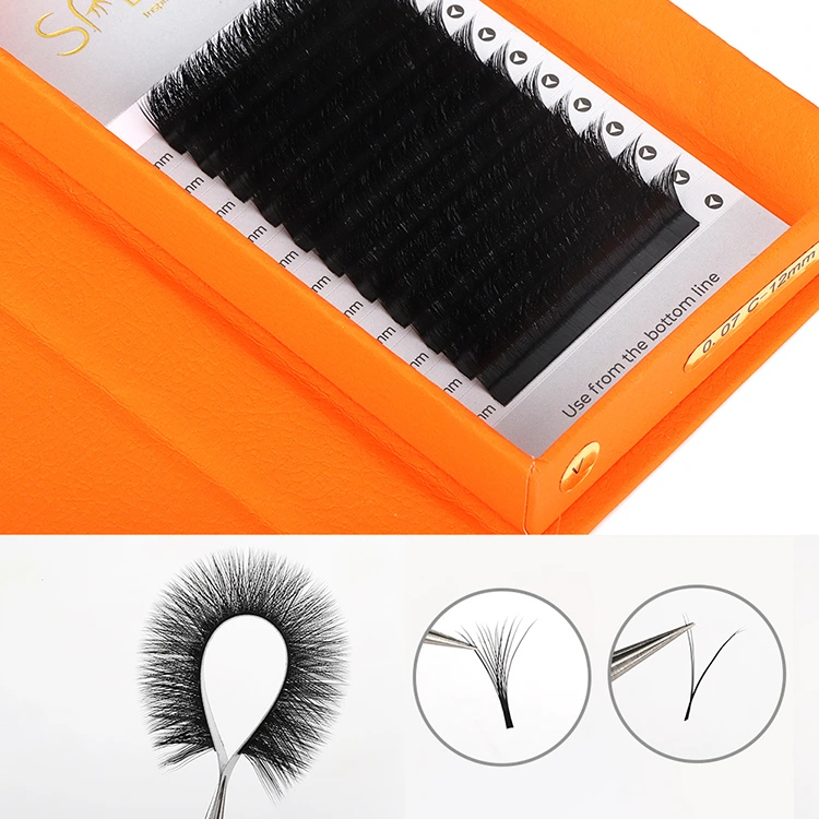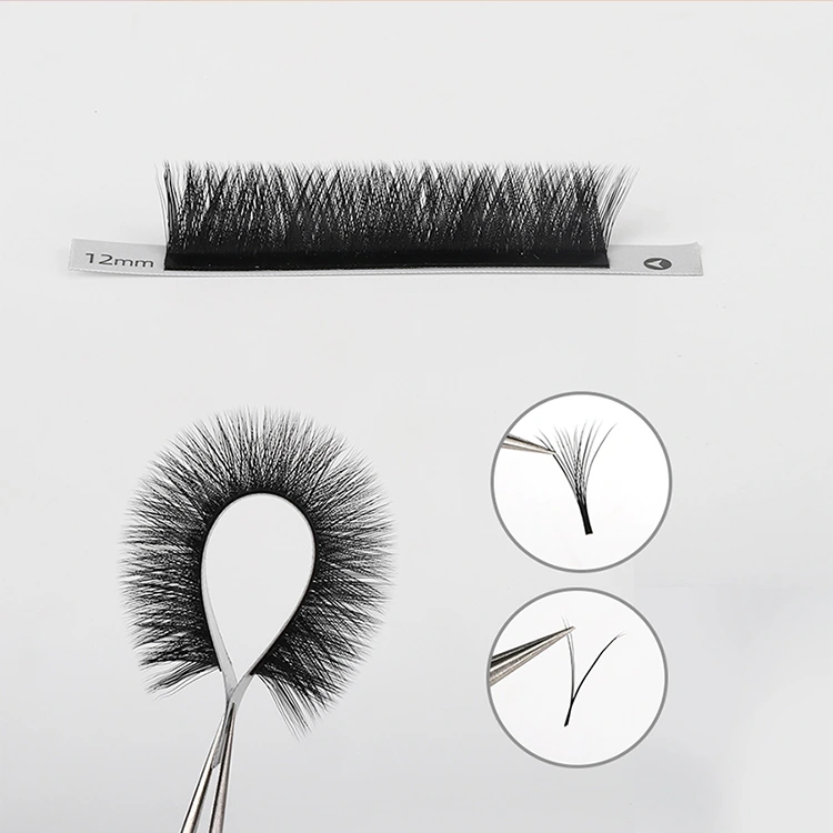 A V alakú göndör szempillák döntő tulajdonsága a multifunkciók. Más stílusokat kínál, például W, YY és ikonikus V alakú, valamint különféle specifikációkat 3D-től 6D-ig, ami könnyűvé teszi a bolyhos hamis szempillák létrehozását az ügyfelek igényei szerint.